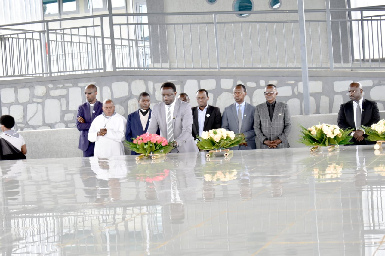 Ati:” Duharanire gufatana mu nda, tugume ku bumwe bwacu, turacyabona abantu batema amatungo, ndetse no kurandura imyaka muri iki gihe cy’ iminsi 100, hari abantu bandika inyandiko ndetse n’abanga gutanga amakuru y’ ahari imibiri ngo ishyingurwe mu cyubahiro, nk’aha mu ntara yacu kuri 17 tuzashyingura imibiri igera ku 176 kandi yari ahantu banyura bajya gusenga, mureke twamagane amacakubiri dufatanye gukumira abapfobya n’abagifite ingengabitekerezo ya Jenoside “.