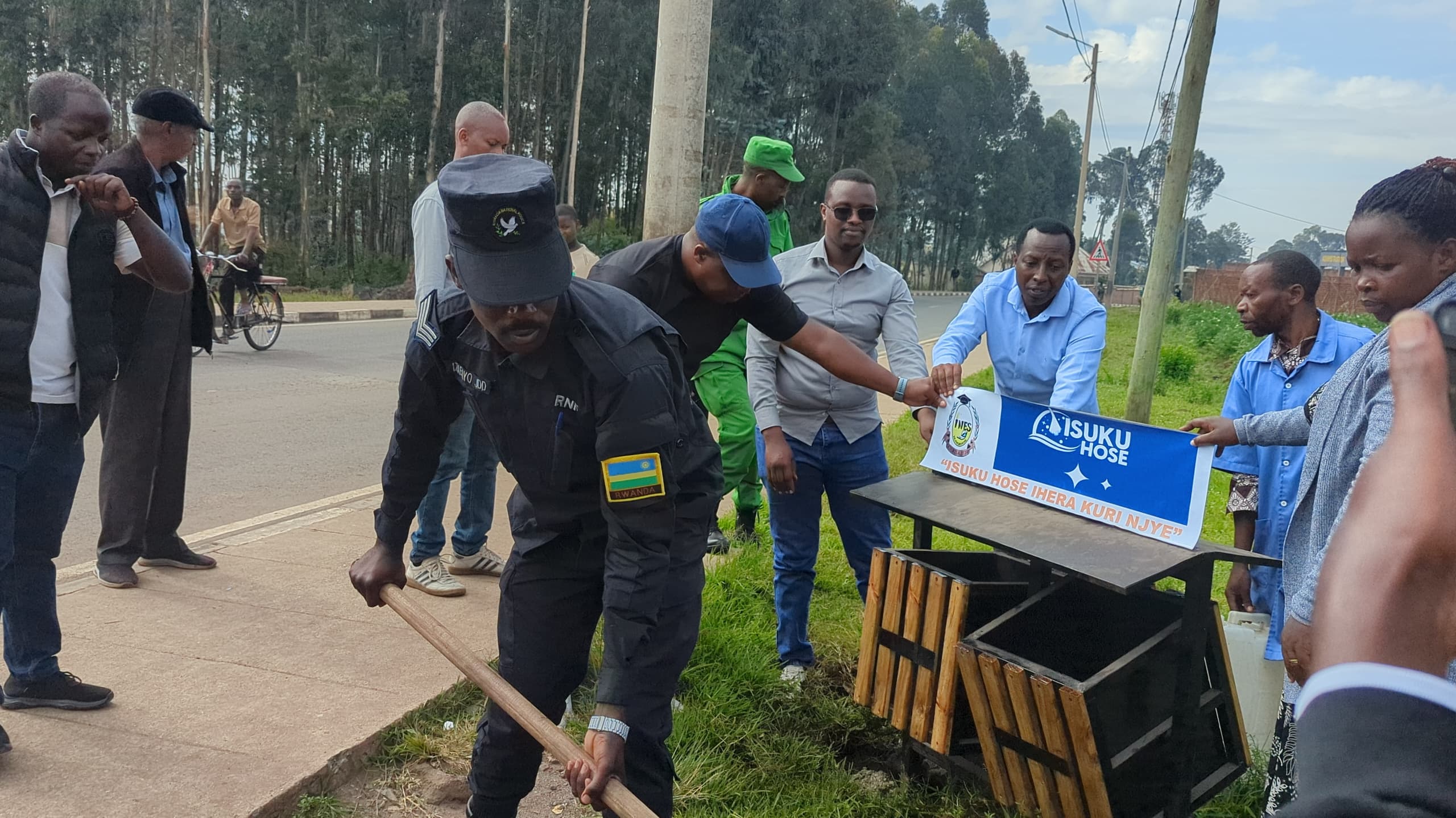 Mu rwego rwo gukomeza kunoza isuku, kuri uyu wa Kabiri tariki ya 14 Mata 2026, ubuyobozi bw’Akarere ka Musanze ku bufatanye n’Ishuri Rikuru ry’Ubumenyingiro rya INES-Ruhengeri, bashyize ku muhanda udusanduku tujugunywamo imyanda (Puberi) turindwi.