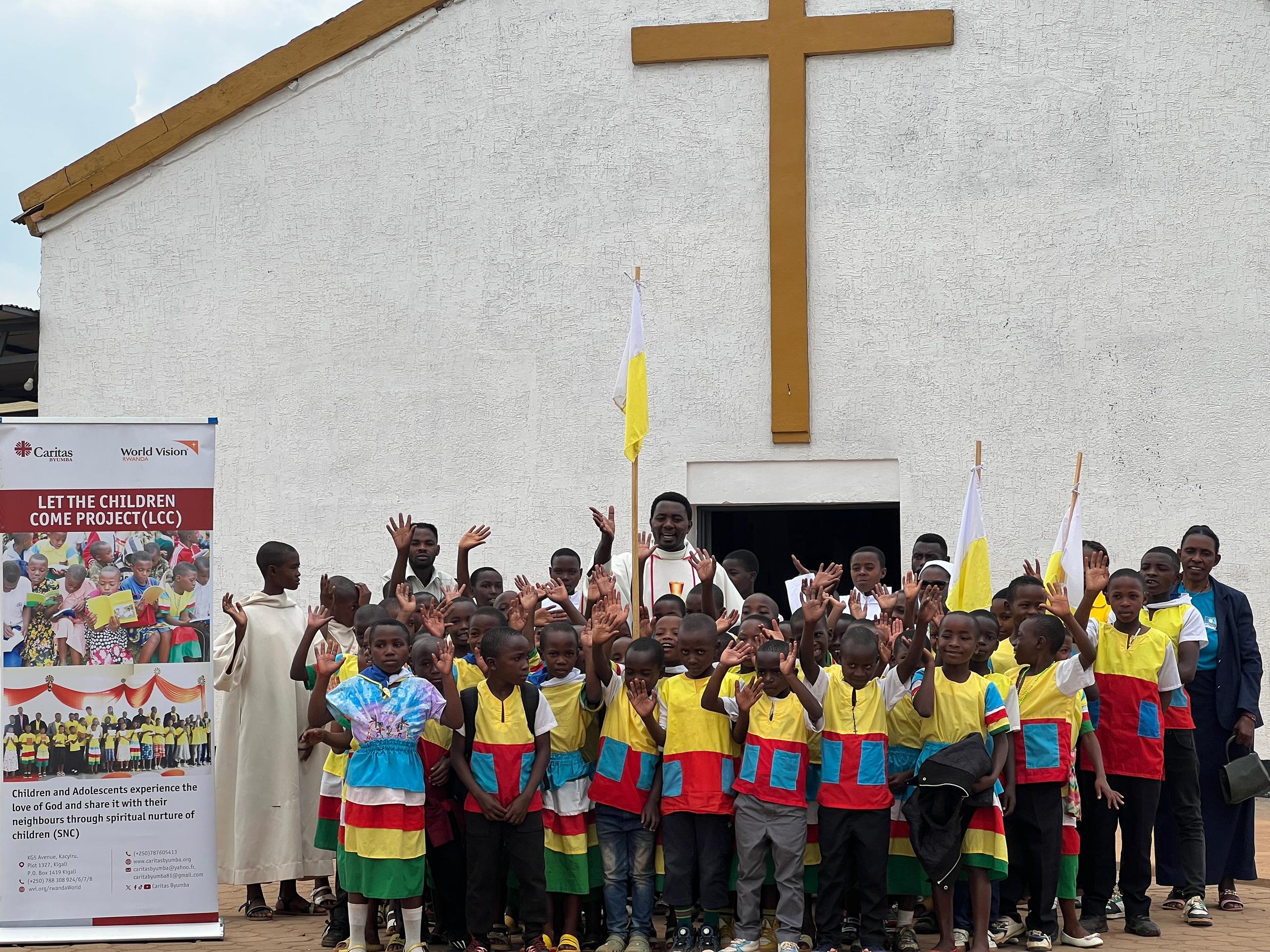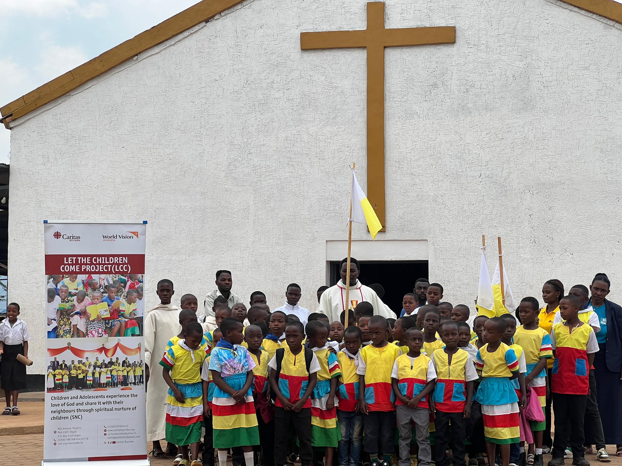 Ati:” Buri Mwaka dufatanya na World Vision tugasangira n’abana bakidagadura bakishima natwe tukabereka ibyishimo nk’ababyeyi nka Kiliziya, tubaha impano zitandukanye ariko kandi tukabaha n’inama zo kurushaho kugira urukundo hagati yabo gusa mu kubikora harimo no kwita ku burenganzira bwabo “.